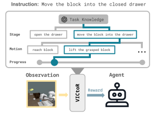 Existing Vision-Instruction Correlation (VIC) reward models struggle with training for long-horizon tasks. We propose VICtoR, a new reward model for long-horizon robotic reinforcement learning that assigns rewards hierarchically.